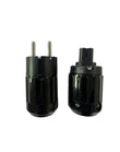 High quality Schuko plug with non magnetic brass, rhodium plated pins and ground and solid IEC plug with rhodium plated contacts to provide extreme conductivity, isolation and connection.