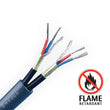 Libre de halógenos y resistente al fuego: Fabricado con una cubierta PE ECCOH 5943 FRHF y clasificado según la clase de fuego Dca-s1, d1 (densidad de humo: s1, partículas: d1). Aprobado para instalación en entornos públicos según el código Boverkets BFS 2014:3 BBR21, clase de construcción Br3, requisito E (por ejemplo, viviendas unifamiliares < 200 m² o almacenes/industrias < 500 m²).