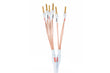 Rakenne on 4 x 1,6 mm2 johdinkonfiguraatio, jossa jokainen johdin koostuu muovisydämestä noin 12 säikeestä 5N hapetonta kuparia, jotka on kehrätty tiukkaan jakoon. Tämä minimoi tehokkaasti ihovaikutusta ja induktanssia ja valitsemalla akustisesti suotuisan PP:n eristeeksi (eristeeksi), akustinen stabiilisuus, korroosiota ja materiaalin väsymistä estämällä, pysyy vuodesta toiseen korkeimmalla mahdollisella tasolla.